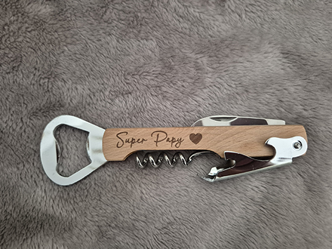 Tire-bouchon, décapsuleur, couteau. 5,5 cm. Personnalisation au choix. En rupture de stock actuellement