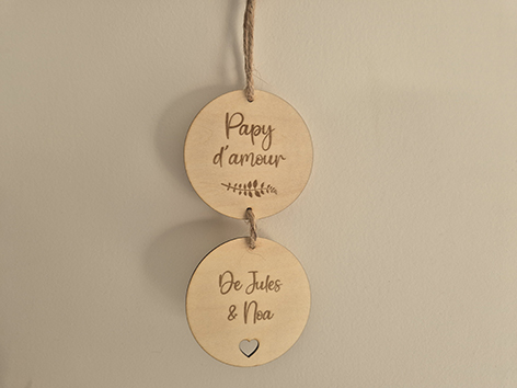 2 rond de 8 cm. Epaisseur 3mm. Texte au choix. Possibilité de rajouter des ronds
