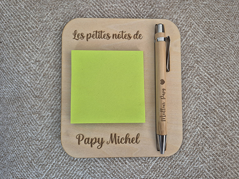 Dim 13 x 15 cm sur 2 mm doublé + stylo gravé