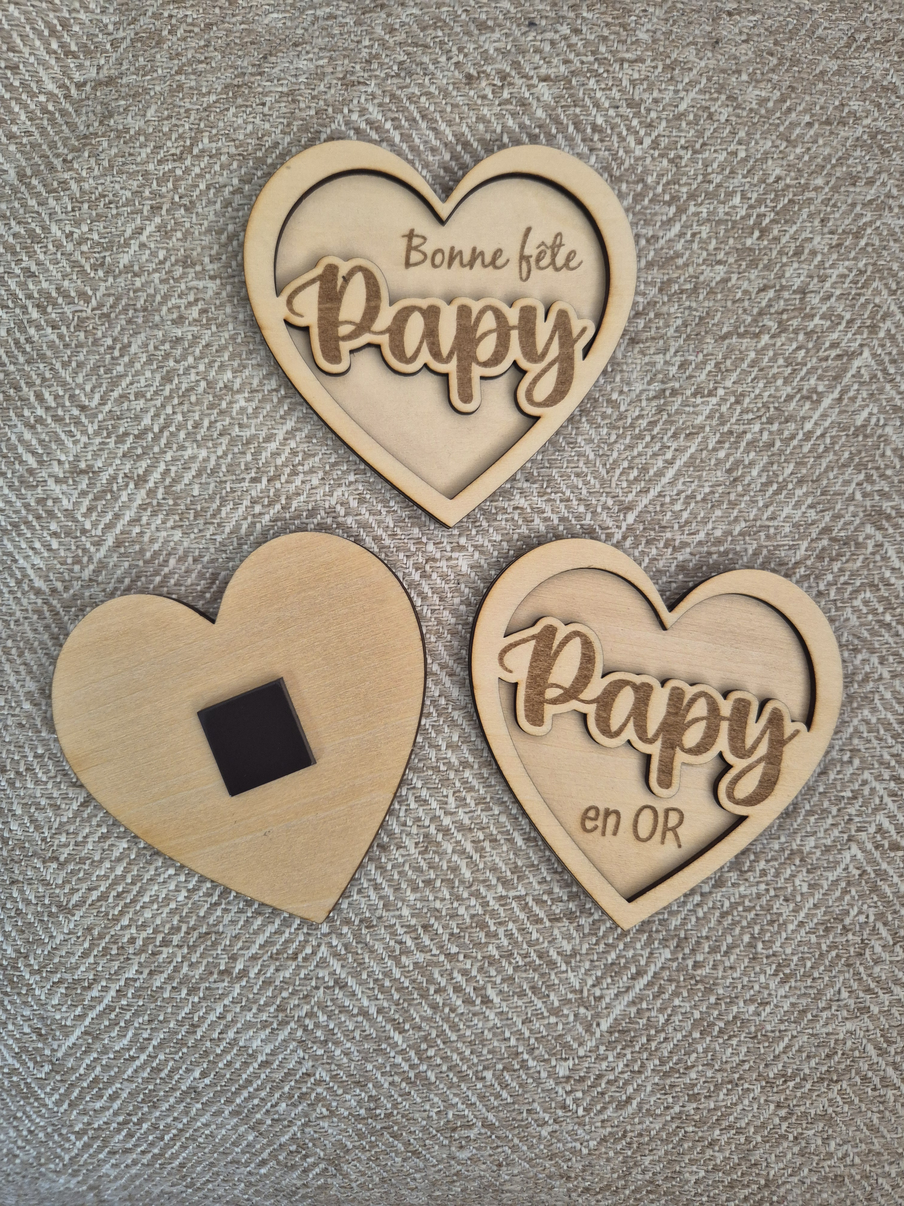 Dim 5 x 5 cm. Possibilité de rajouter un prénom et/ou l'année dernière pour 2€